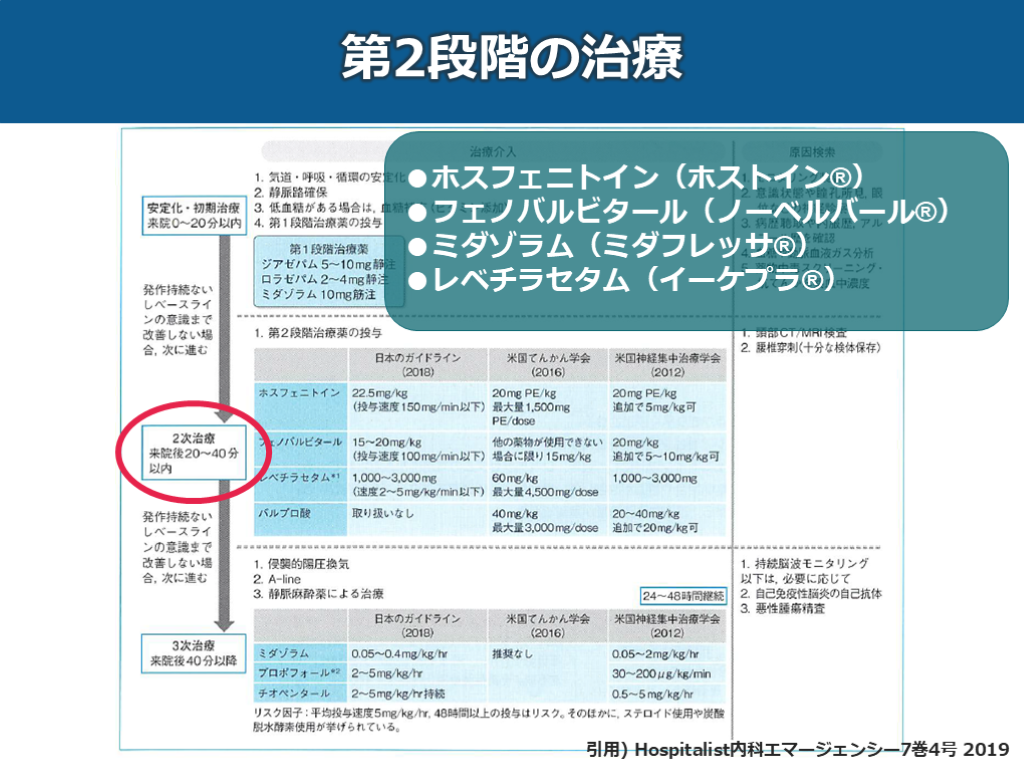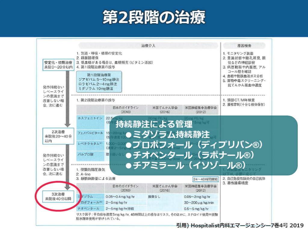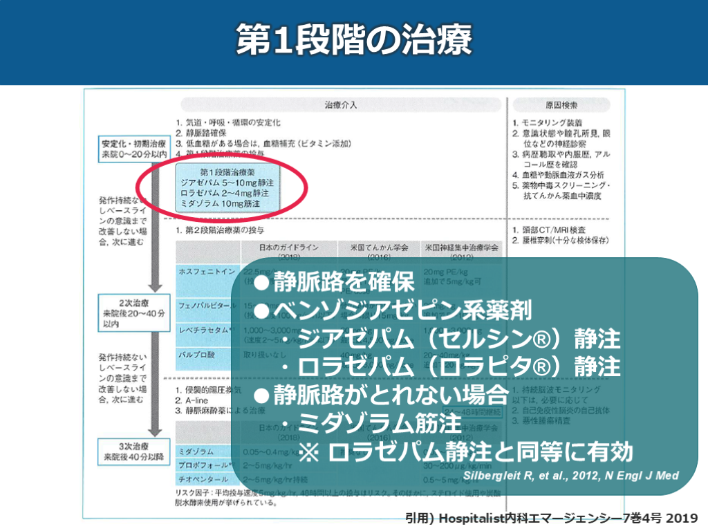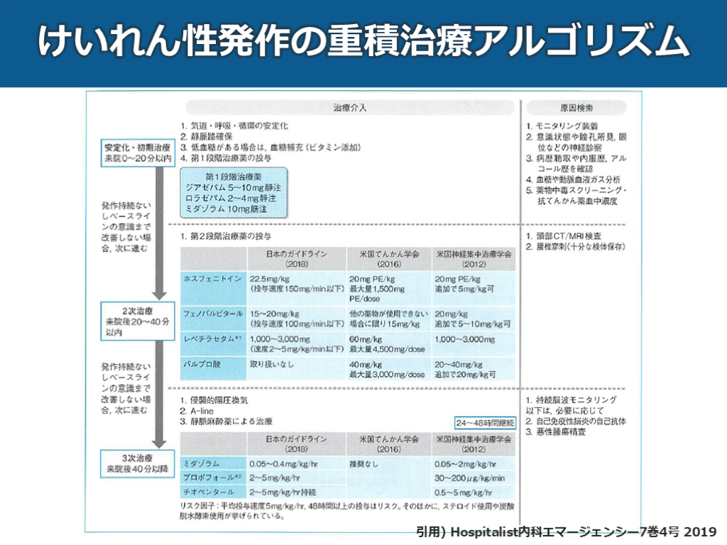 #30. けいれん性発作の重積治療アルゴリズム 引用) Hospitalist内科エマージェンシー7巻4号 2019