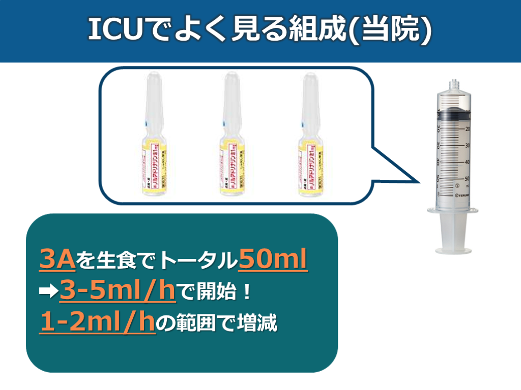 #50. ICUでよく見る組成(当院) 3Aを生食でトータル50ml