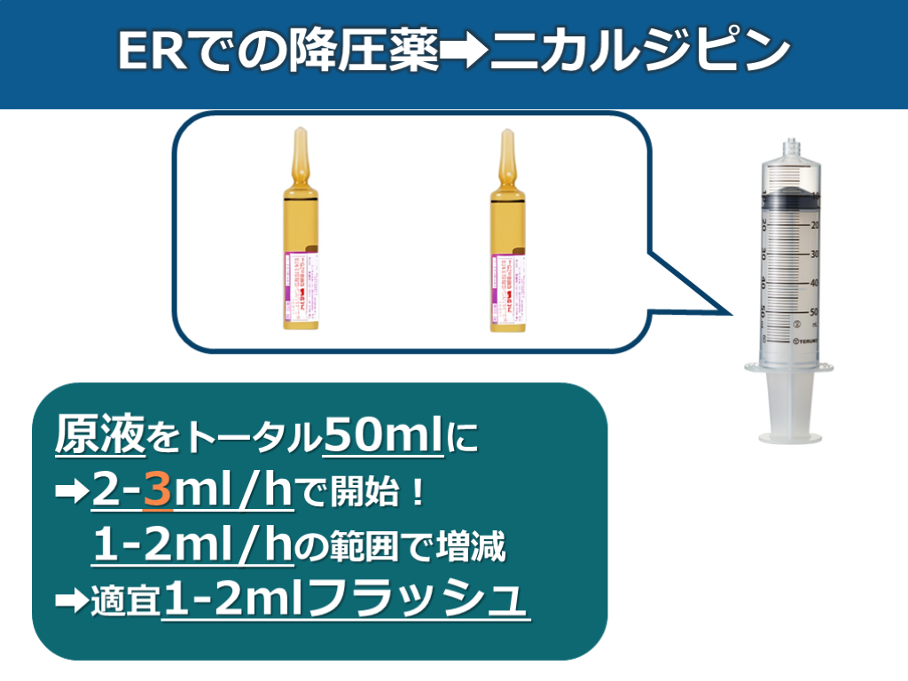 #62. ERでの降圧薬➡ニカルジピン 原液をトータル50mlに