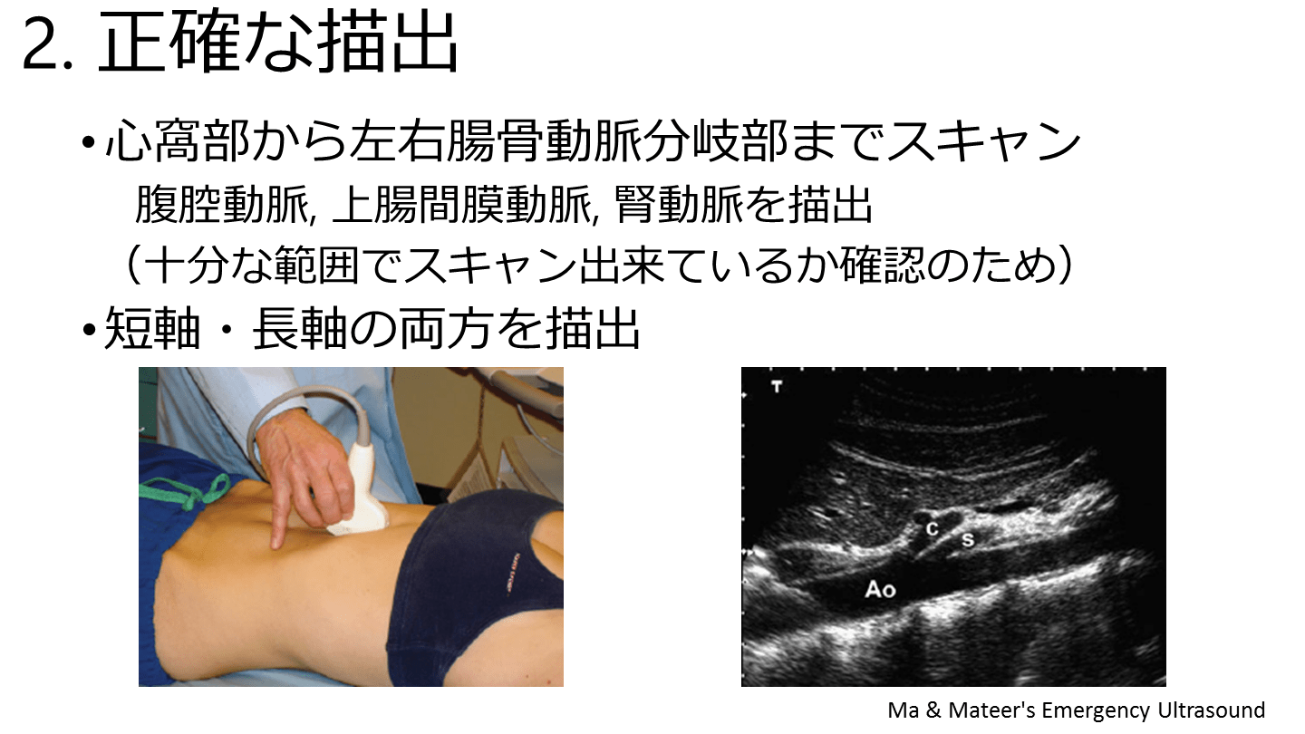 大動脈エコーの正確な描出方法