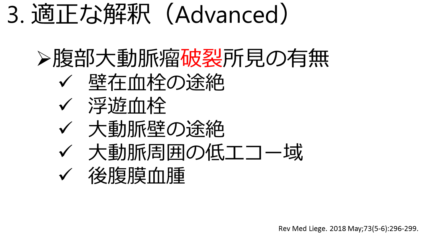 #18. 3. 適正な解釈(Advanced) 腹部大動脈瘤破裂所見の有無