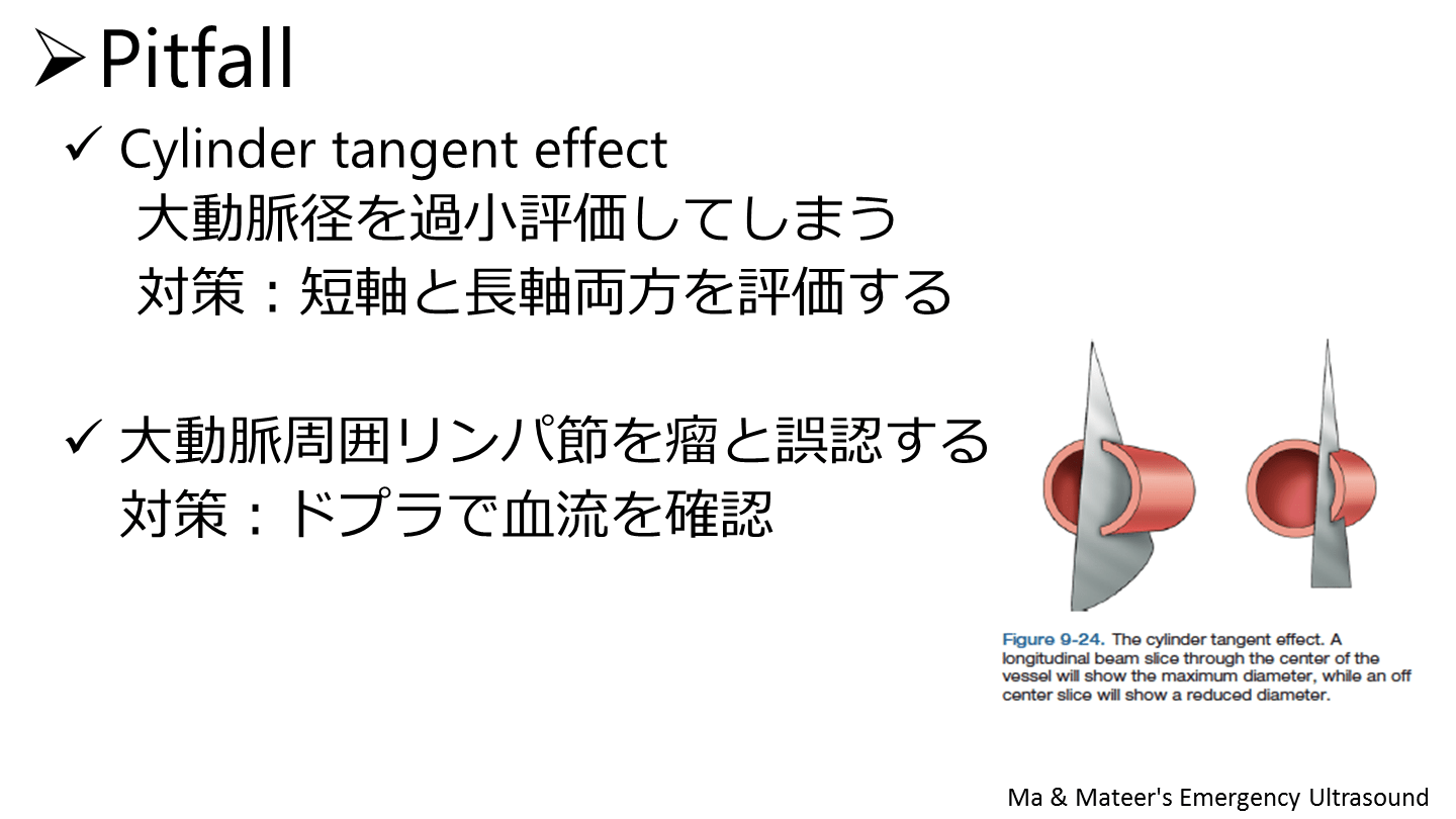 形態ー紡錘状がcommon(嚢状は小さくても破裂riskあり) Ma & Mateer's Emergency Ultrasound 救急・プライマリケアで必要なポイントオブケア超音波