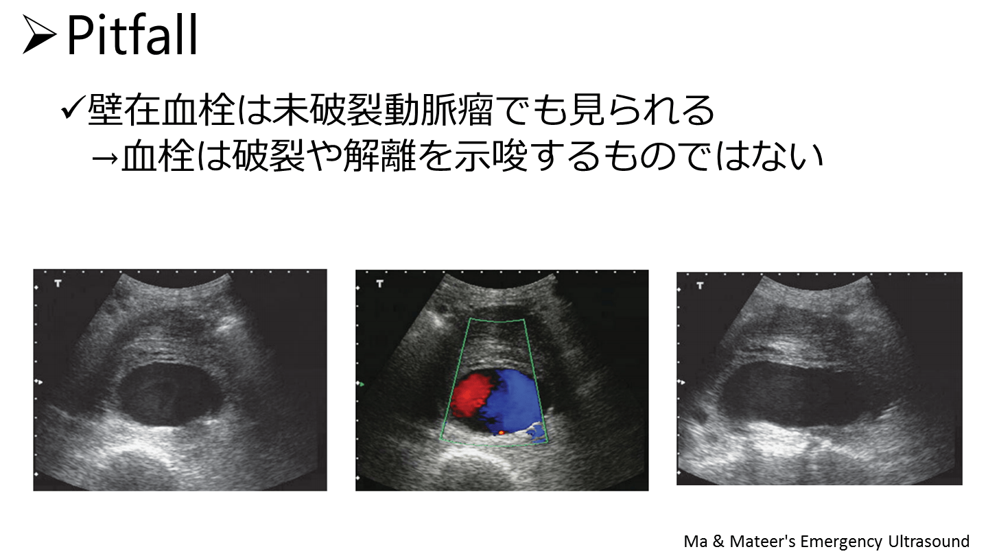 →血栓は破裂や解離を示唆するものではない Pitfall Ma & Mateer's Emergency Ultrasound