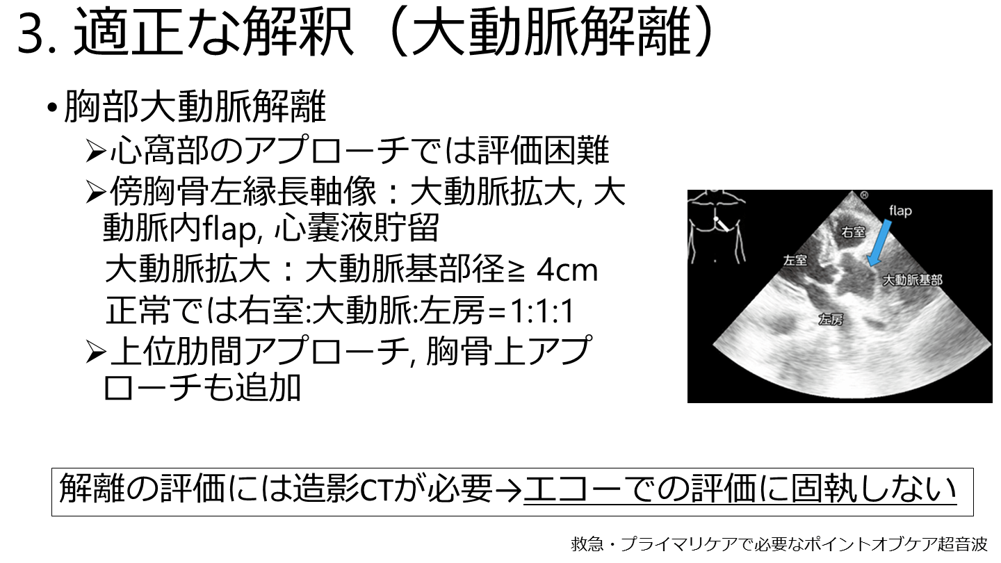 解離の評価には造影CTが必要→エコーでの評価に固執しない 救急・プライマリケアで必要なポイントオブケア超音波