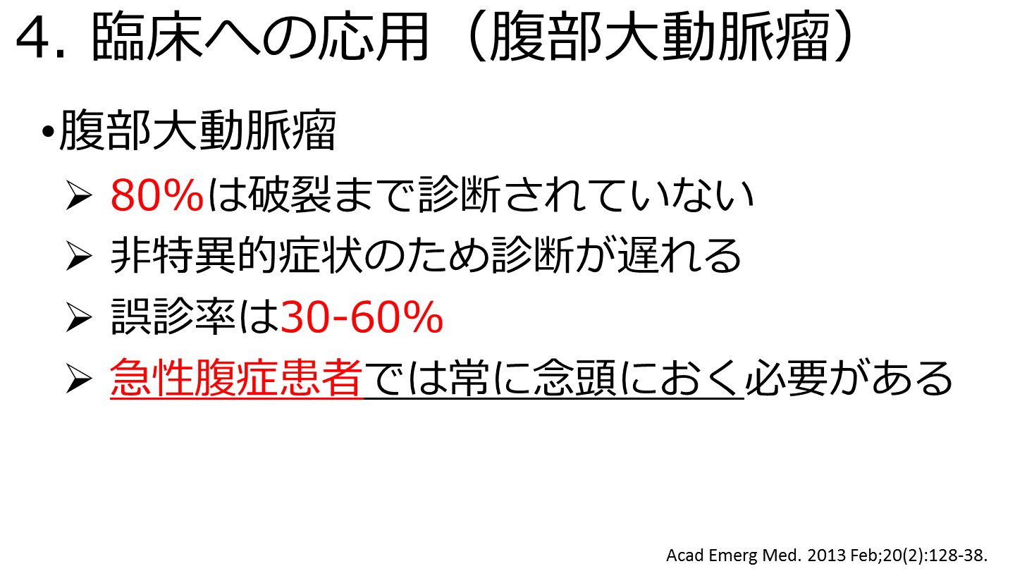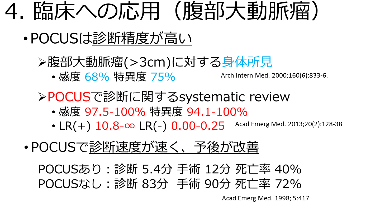 #28. 4. 臨床への応用(腹部大動脈瘤) POCUSは診断精度が高い