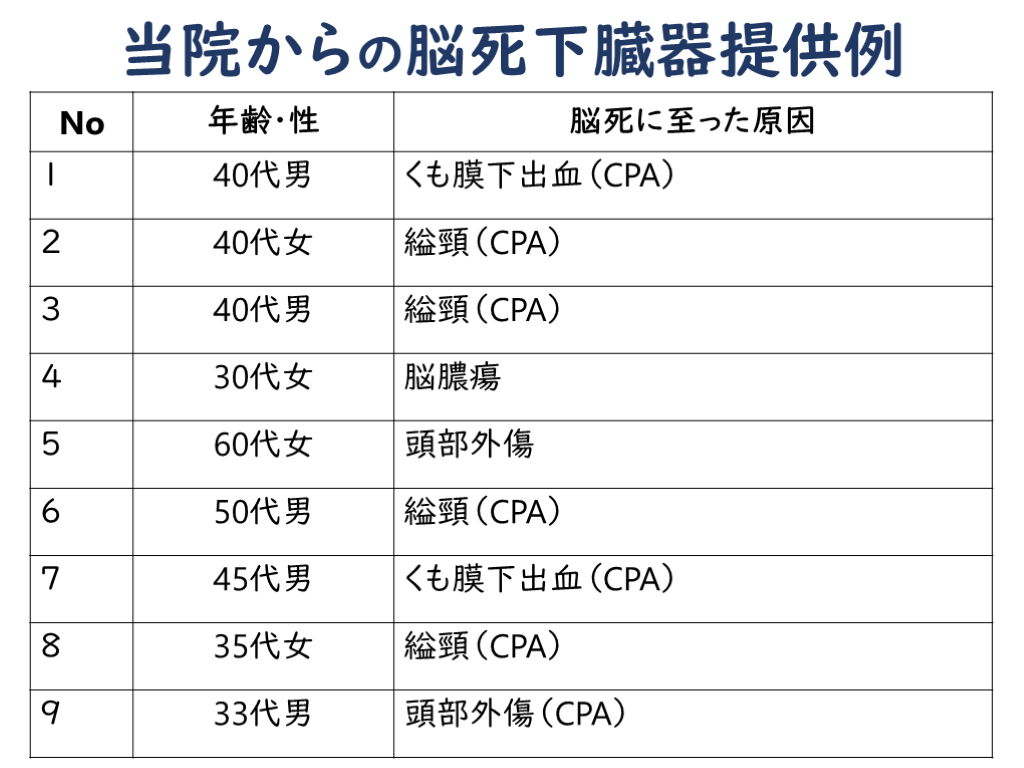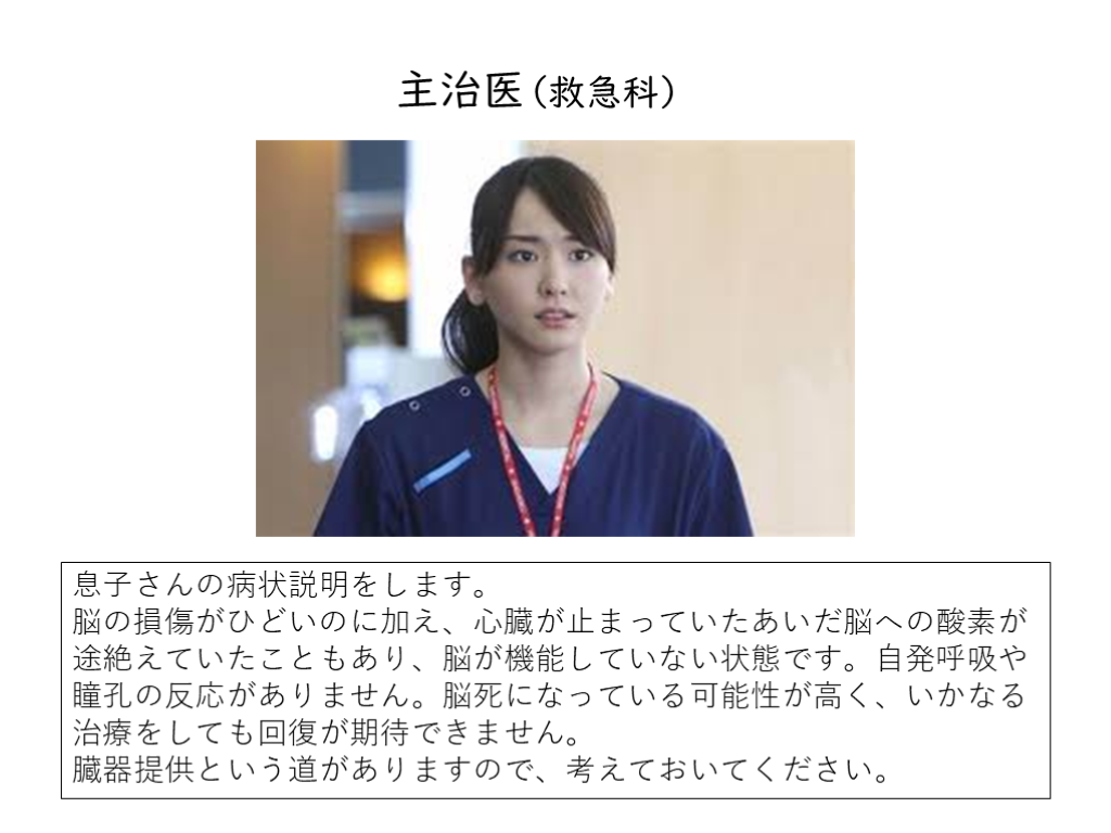 臓器提供という道がありますので、考えておいてください。 主治医(救急科)