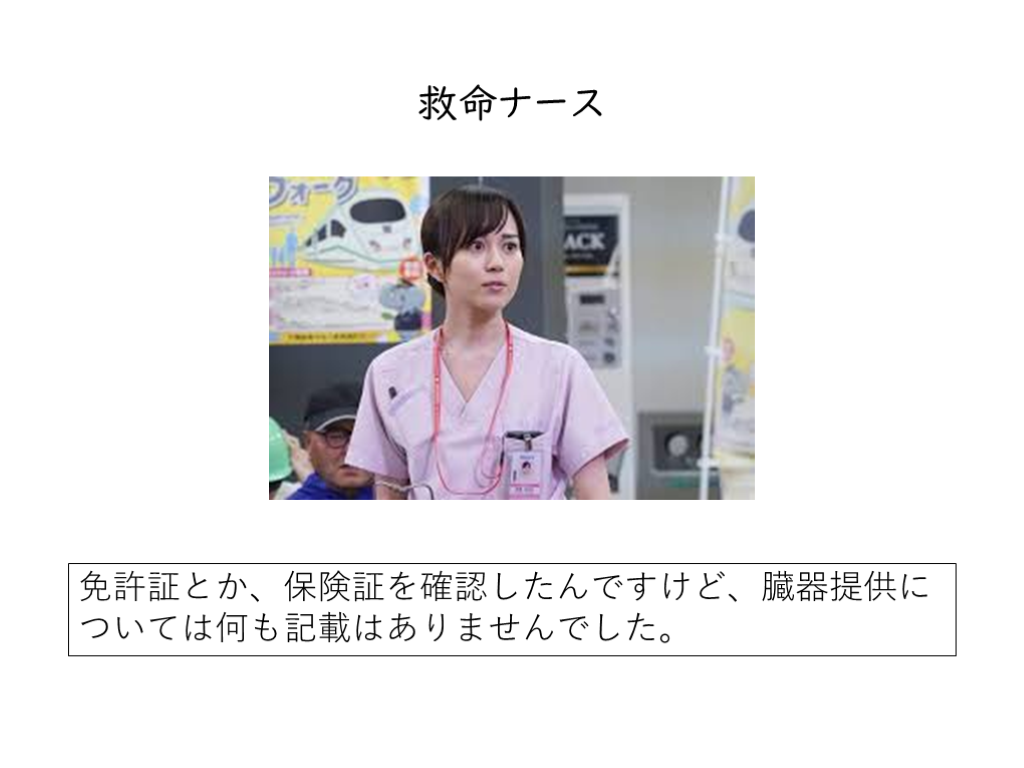 #10. 救命ナース 免許証とか、保険証を確認したんですけど、臓器提供については何も記載はありませんでした。