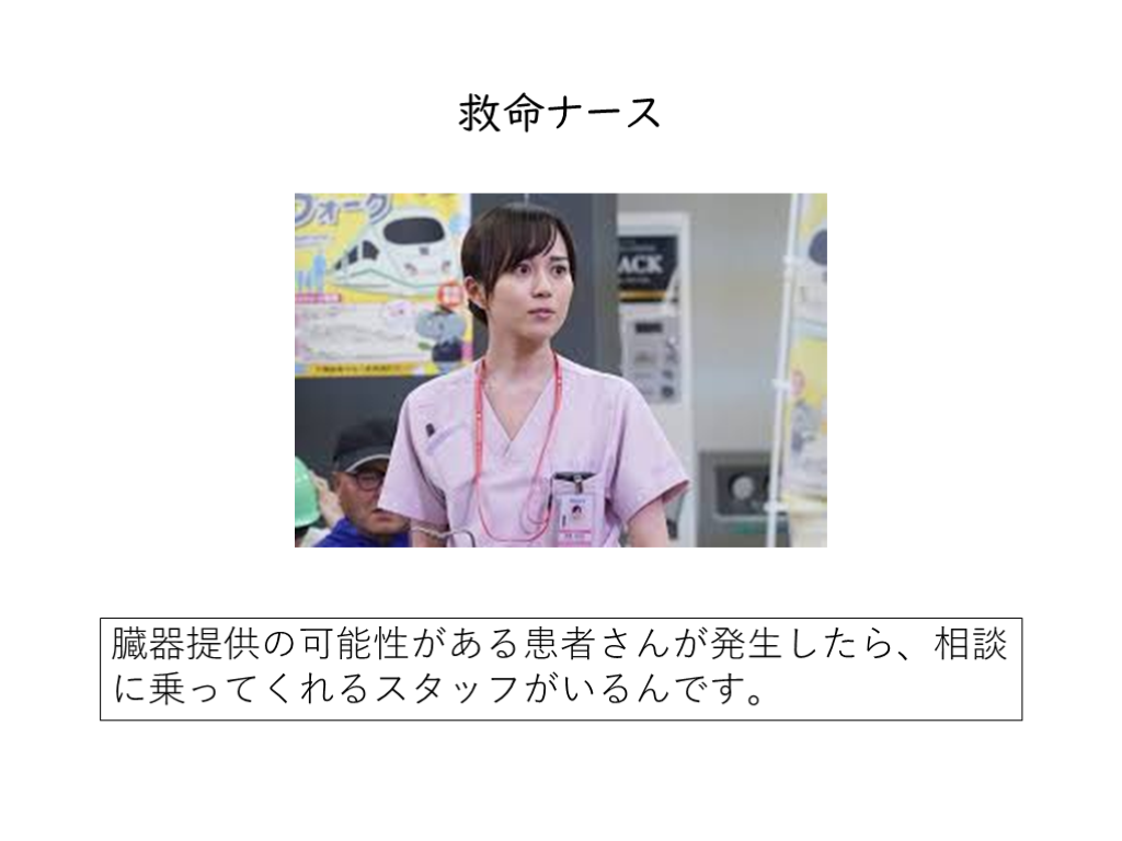 #16. 解説~院内コーディネーターについて~ 当院には臓器提供に関しての院内コーディネーターがいます。