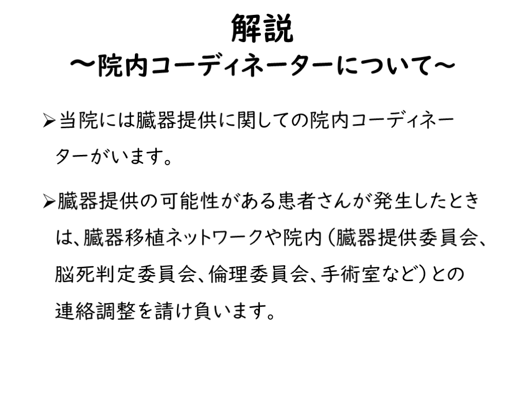臓器提供の可能性があるかもしれないと思ったら、院内コーディネーターにご相談ください.