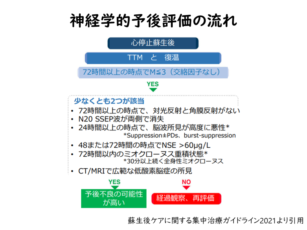 #23. 神経学的予後評価の流れ 蘇生後ケアに関する集中治療ガイドライン2021より引用