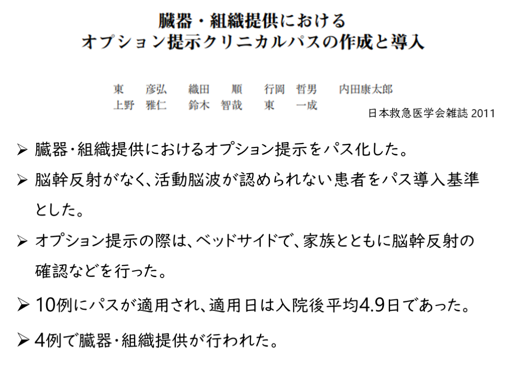 #24. 日本救急医学会雑誌 2011 臓器・組織提供におけるオプション提示をパス化した。