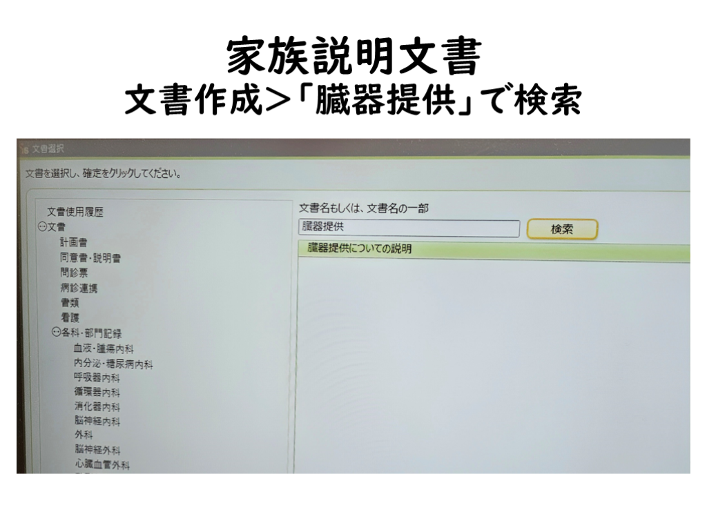 #28. 家族説明文書文書作成>「臓器提供」で検索