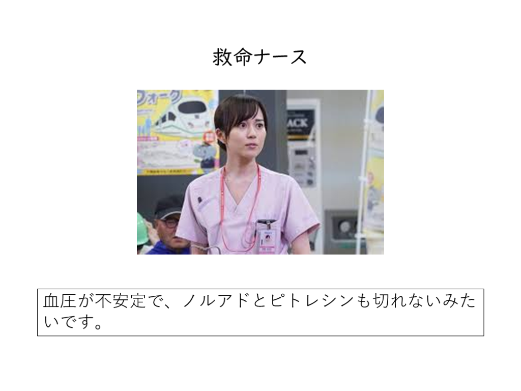 #32. 救命ナース 血圧が不安定で、ノルアドとピトレシンも切れないみたいです。