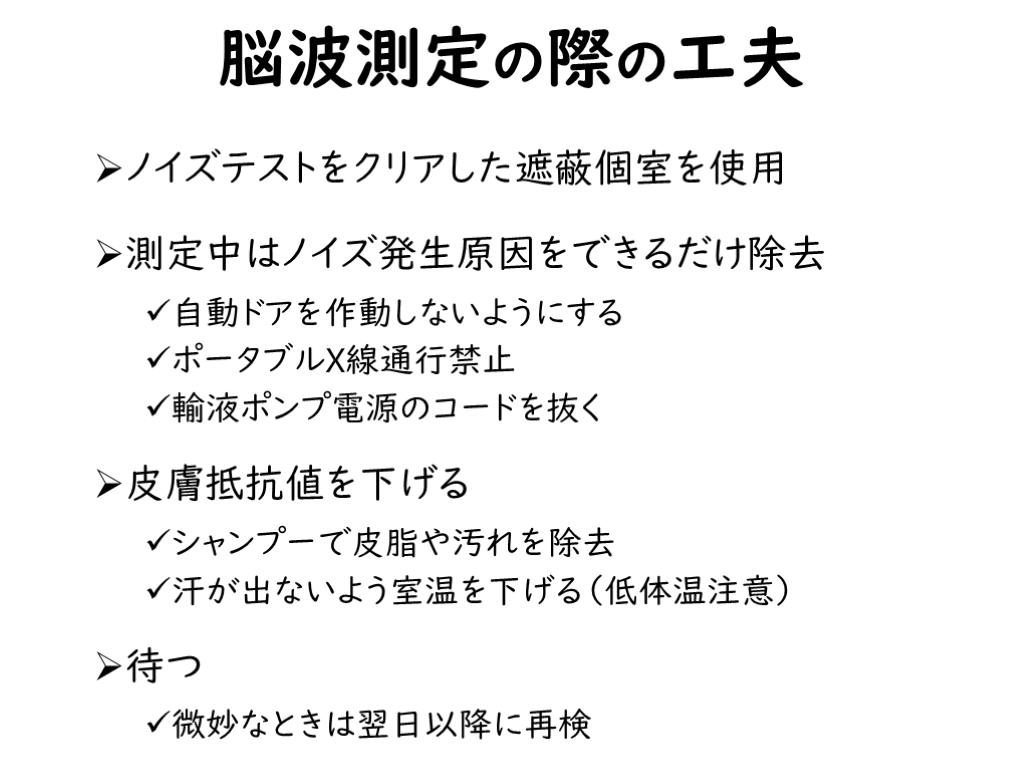 #53. 脳波測定の際の工夫 ノイズテストをクリアした遮蔽個室を使用
