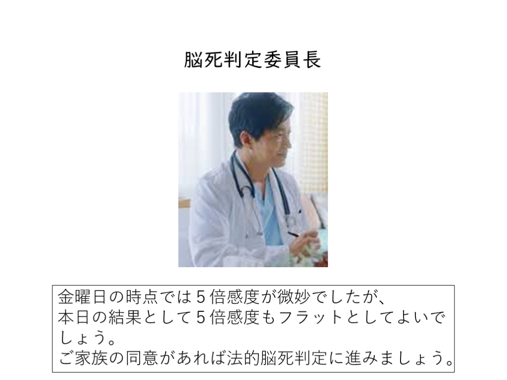 ご家族の同意があれば法的脳死判定に進みましょう。
