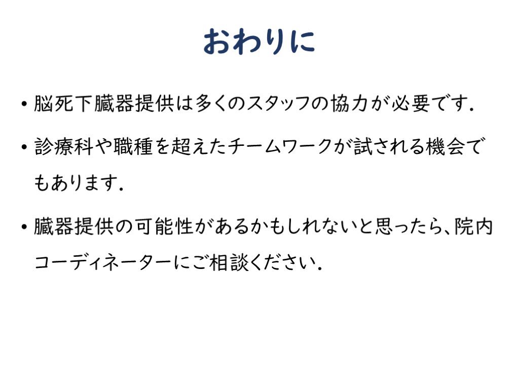 #78. おわりに 脳死下臓器提供は多くのスタッフの協力が必要です.