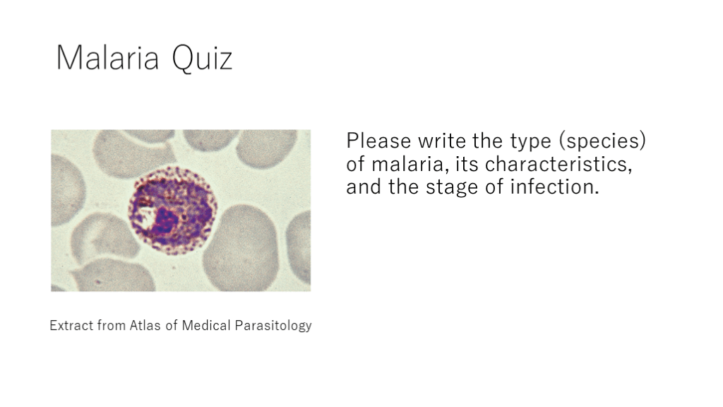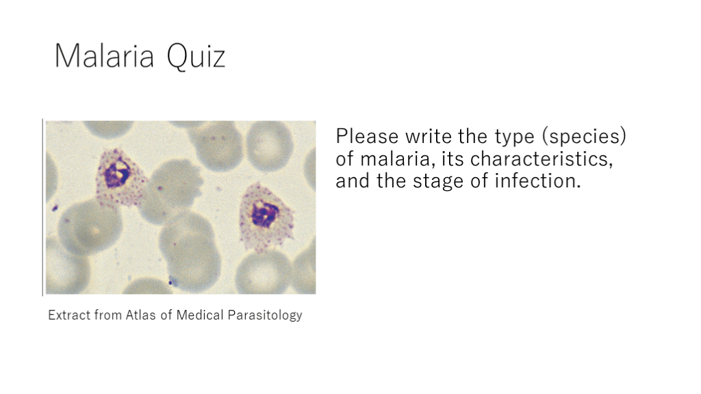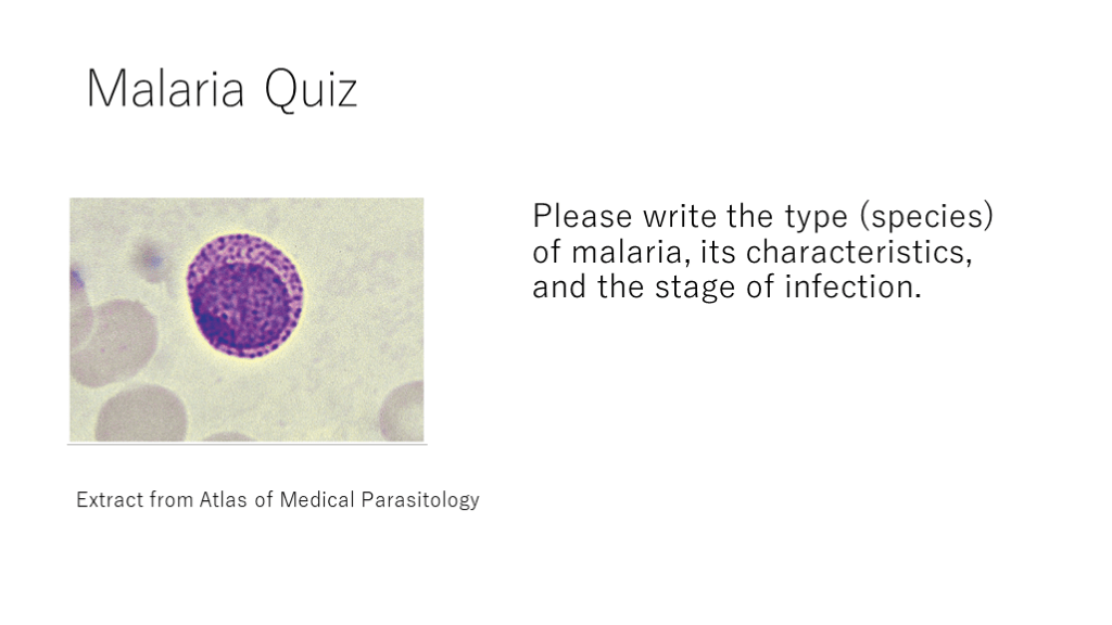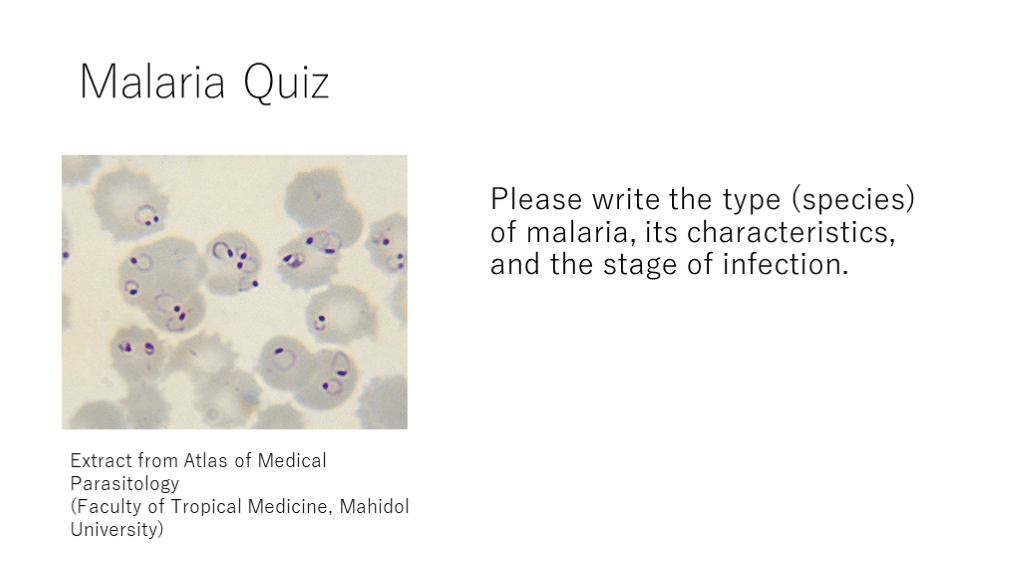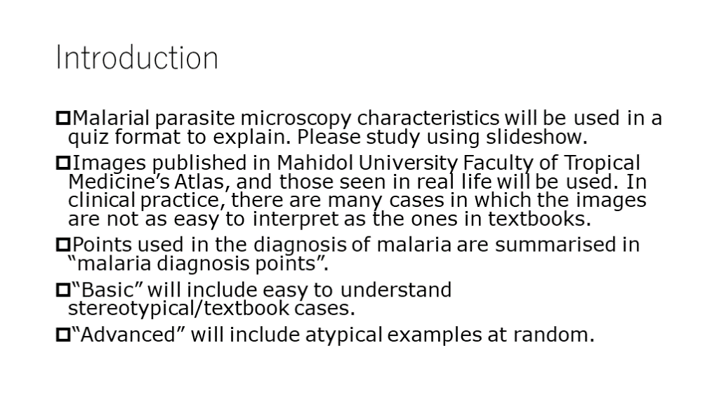 #2. Introduction Malarial parasite microscopy characteristics will be used in a quiz format to explain. Please study using slideshow.