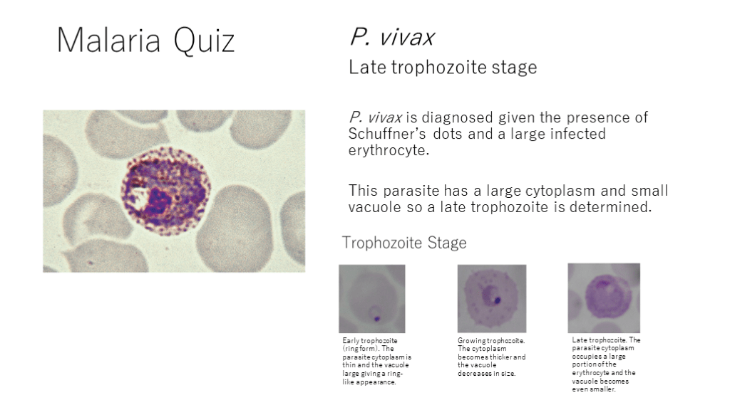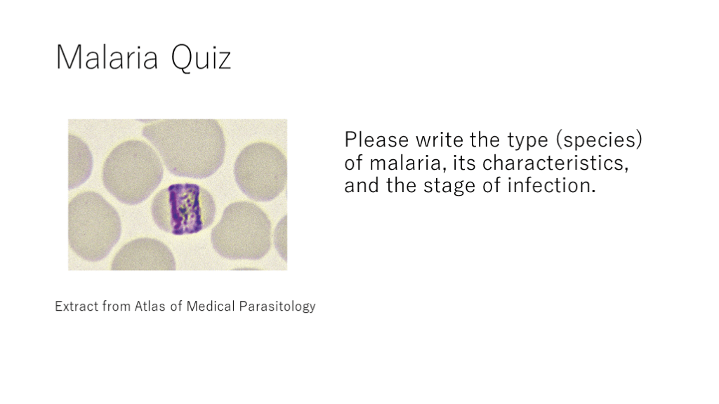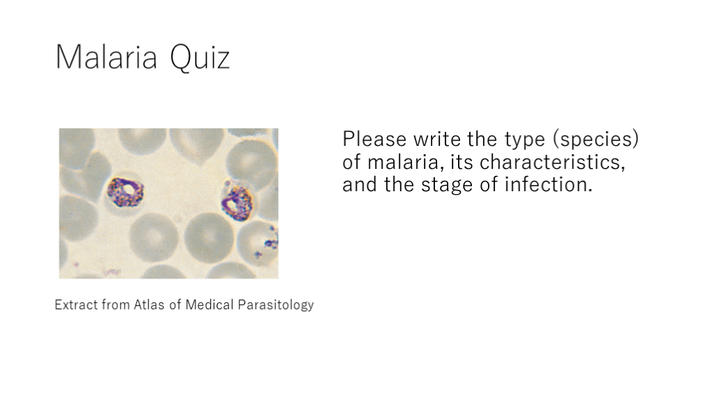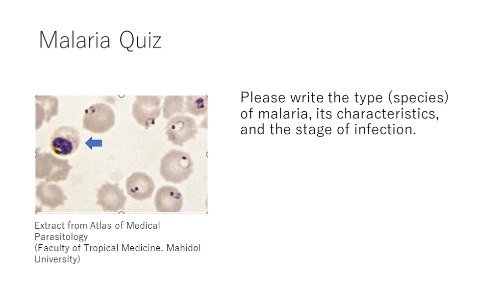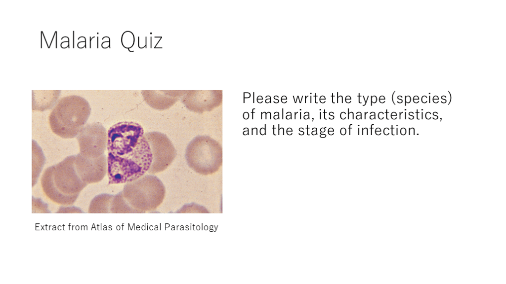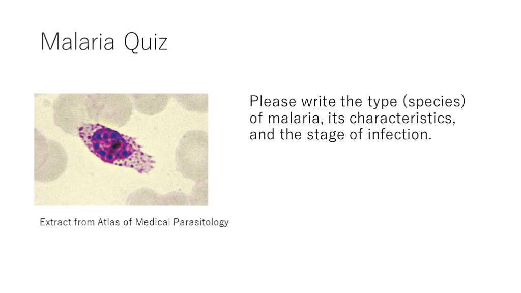 #2. Introduction Malarial parasite microscopy characteristics will be used in a quiz format to explain. Please study using slideshow.