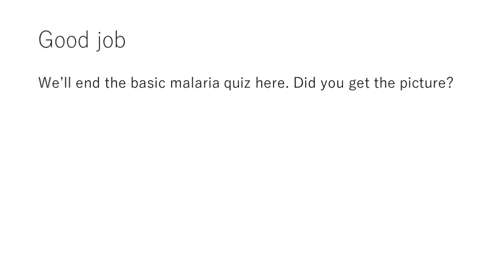 #27. Good job We’ll end the basic malaria quiz here. Did you get the picture?