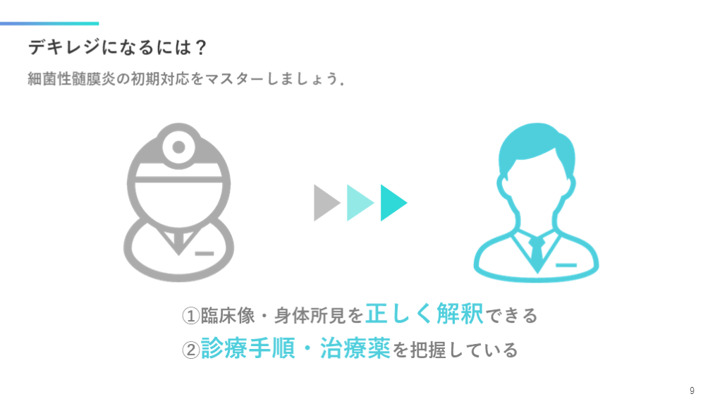 #10. デキレジになるには? 細菌性髄膜炎の初期対応をマスターしましょう. 9 ①臨床像・身体所見を正しく解釈できる