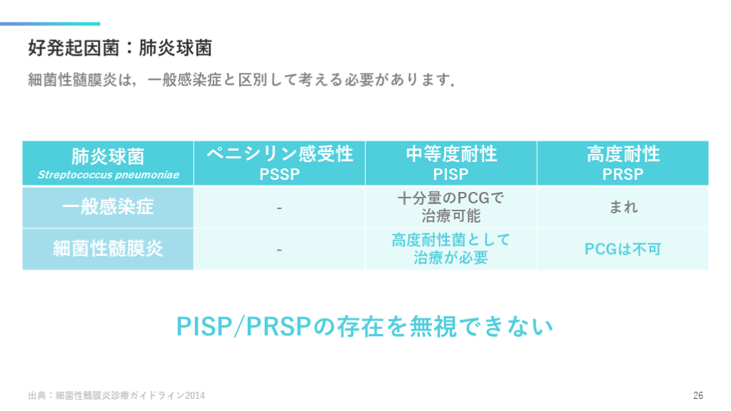#27. 好発起因菌:肺炎球菌 細菌性髄膜炎は,一般感染症と区別して考える必要があります. 出典:細菌性髄膜炎診療ガイドライン2014 26 PISP/PRSPの存在を無視できない