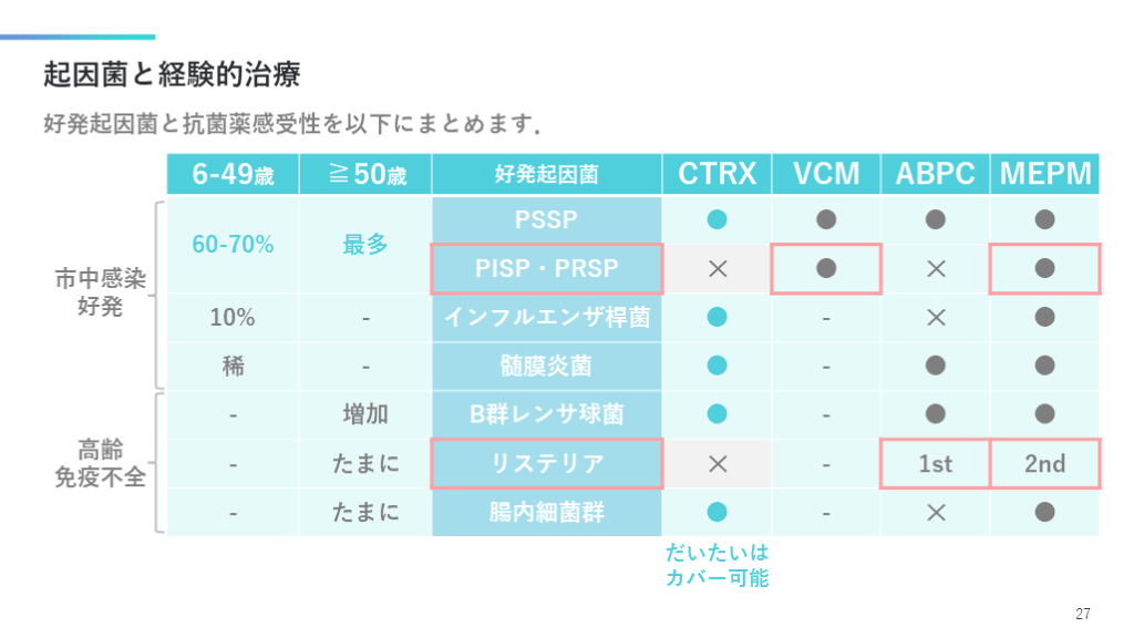 #28. 好発起因菌と抗菌薬感受性を以下にまとめます. 27 起因菌と経験的治療 だいたいは