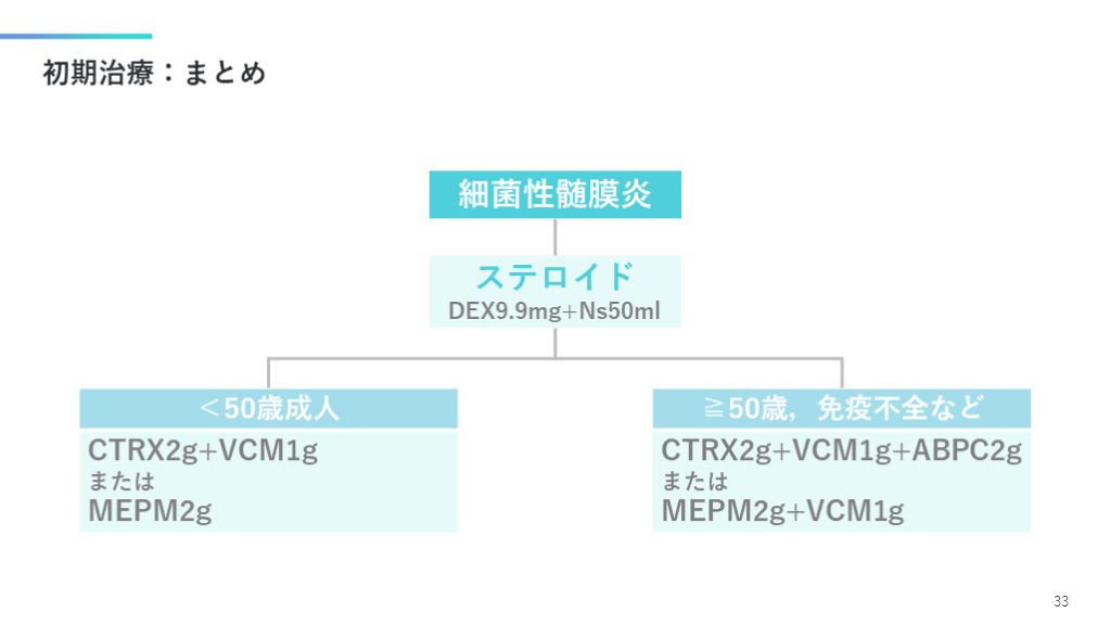 #34. 33 初期治療:まとめ 細菌性髄膜炎 ステロイド