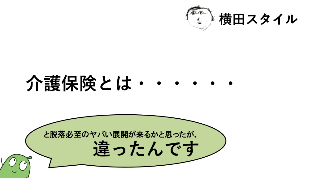 #3. 横田スタイル 介護保険とは・・・・・・ と脱落必至のヤバい展開が来るかと思ったが, 違ったんです