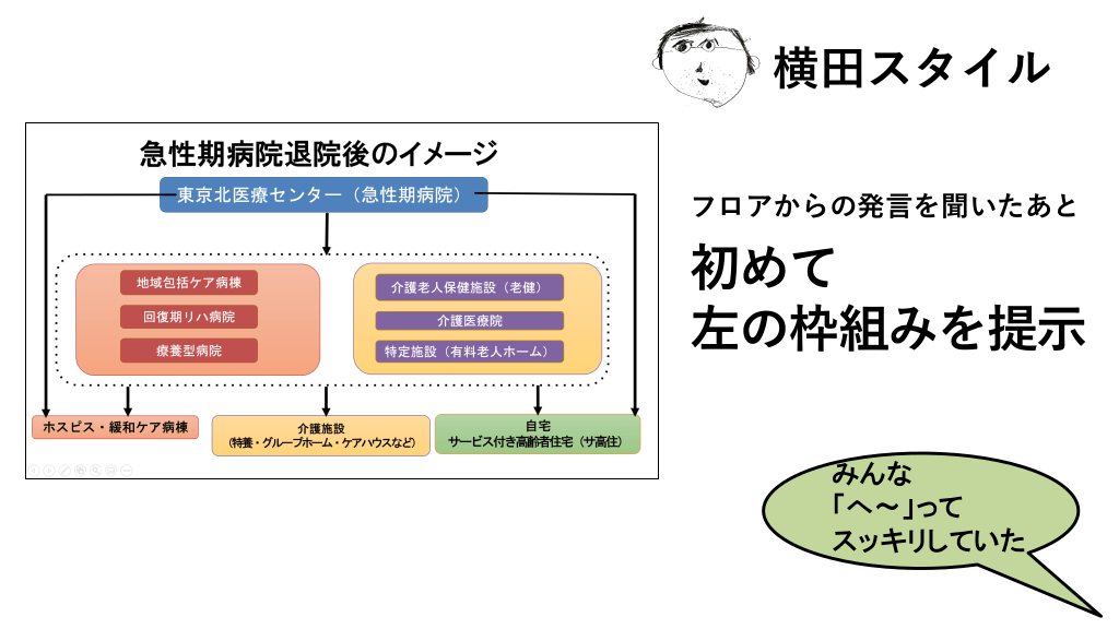 #5. 横田スタイル フロアからの発言を聞いたあと 初めて 左の枠組みを提示 みんな 「へ~」って スッキリしていた