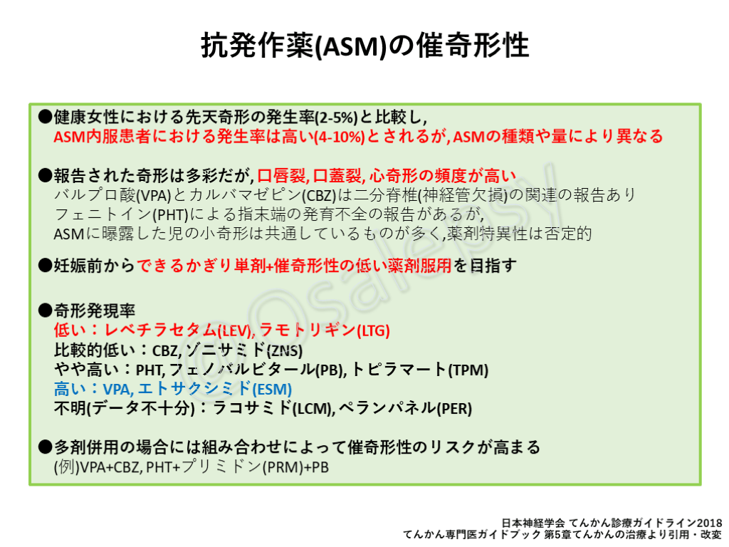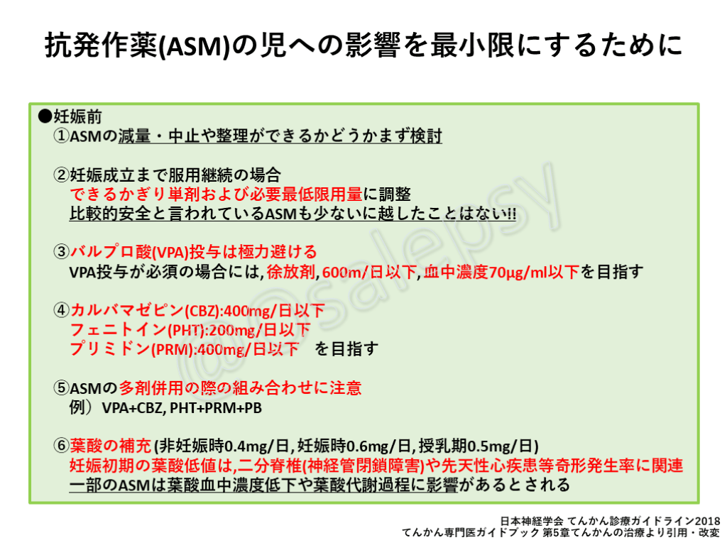 一部のASMは葉酸血中濃度低下や葉酸代謝過程に影響があるとされる 日本神経学会 てんかん診療ガイドライン2018 @Osalepsy #18.