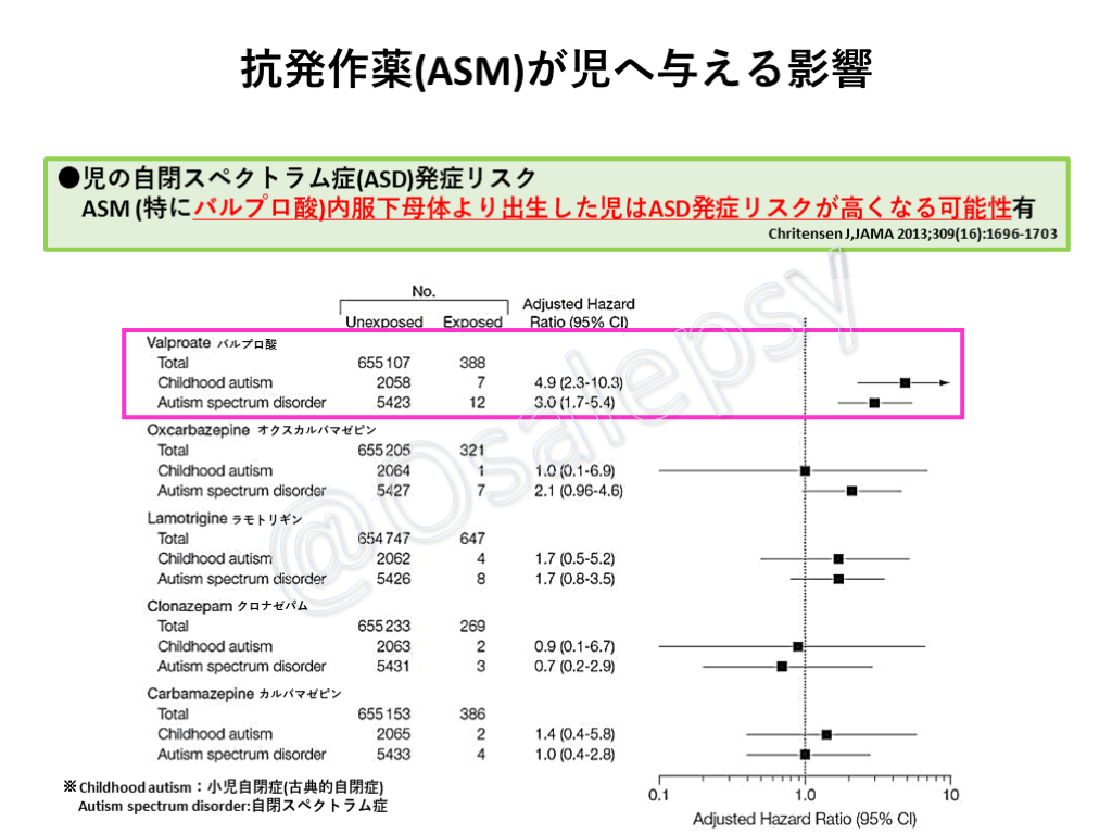 Chritensen J,JAMA 2013;309(16):1696-1703 @Osalepsy @Osalepsy バルプロ酸 オクスカルバマゼピン ラモトリギン クロナゼパム カルバマゼピン ※Childhood autism:小児自閉症(古典的自閉症)