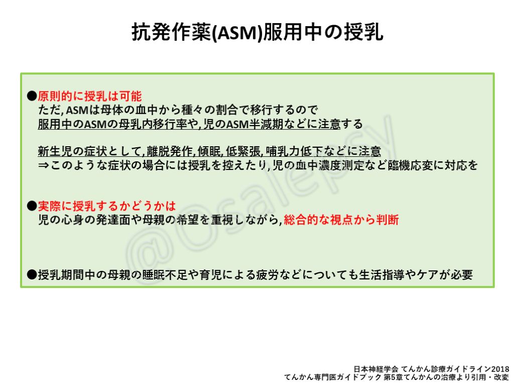 ●授乳期間中の母親の睡眠不足や育児による疲労などについても生活指導やケアが必要 日本神経学会 てんかん診療ガイドライン2018 @Osalepsy 各抗発作薬の母乳移行率 #19.