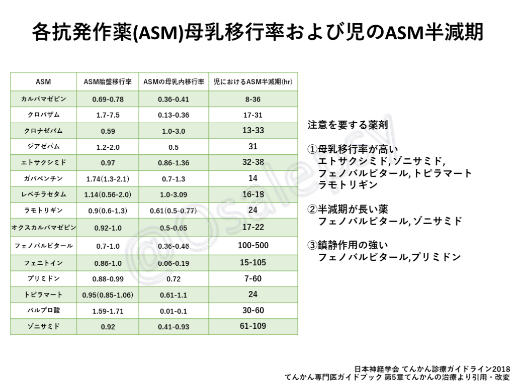 抗発作薬(ASM)服用中の授乳 てんかん専門医ガイドブック 第5章てんかんの治療より引用・改変