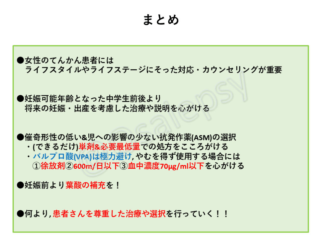 →発作抑制(頻度)と妊娠・出産リスク減少とバランスを考慮した治療
