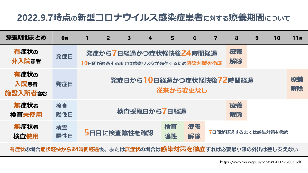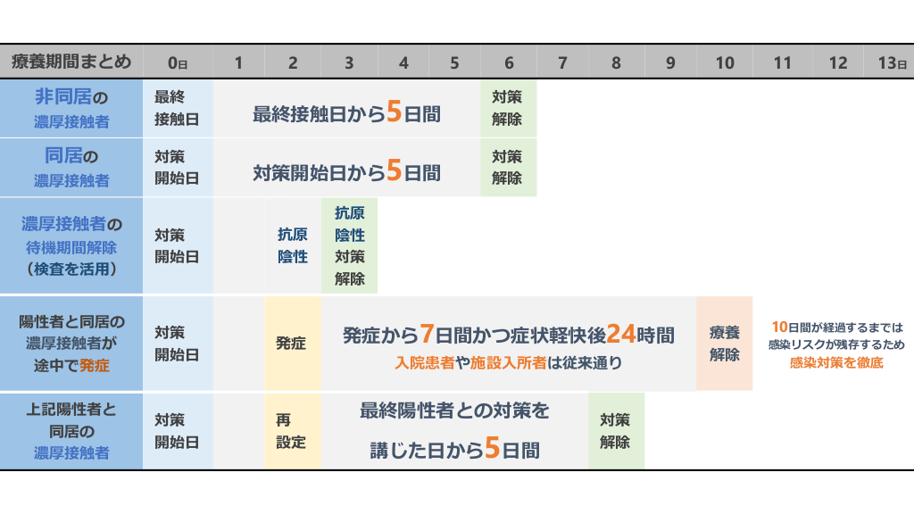 新型コロナウイルス感染症患者に対する療養期間のまとめ