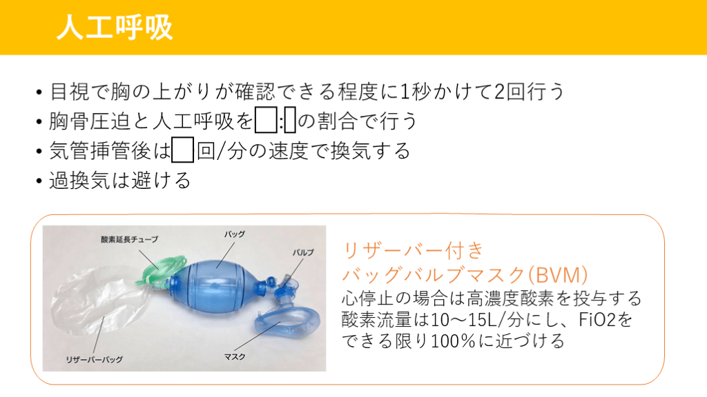 心停止の場合は高濃度酸素を投与する