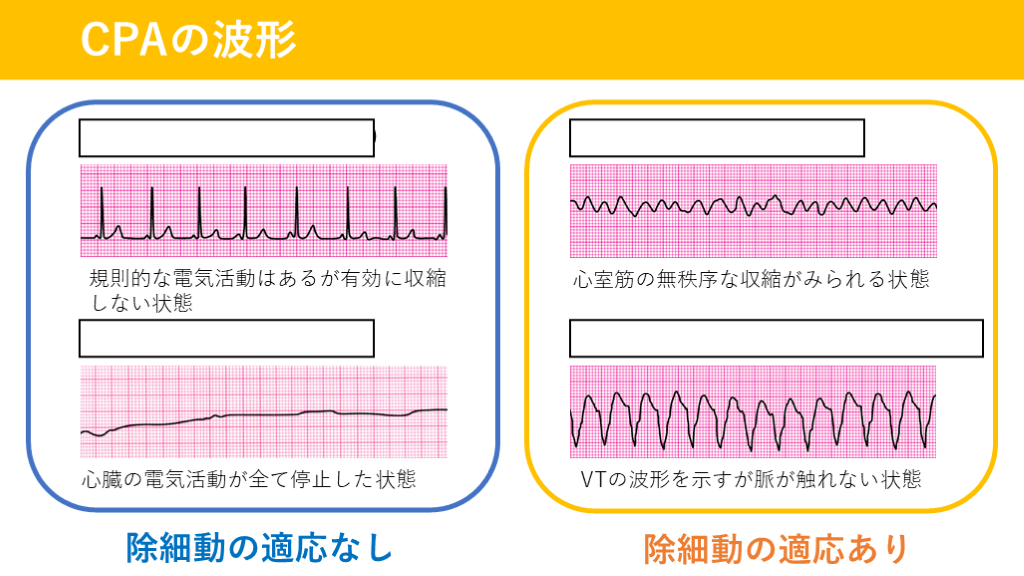 しない状態 除細動の適応あり 除細動の適応なし CPAの波形