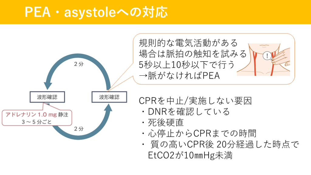 →脈がなければPEA PEA・asystoleへの対応