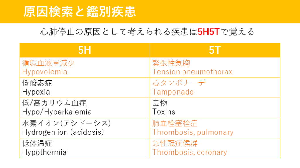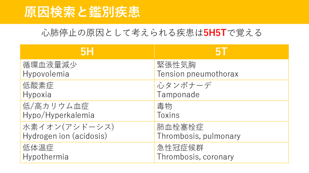 #15. ROSC後 原因検索と鑑別疾患 心肺停止の原因として考えられる疾患は5H5Tで覚える