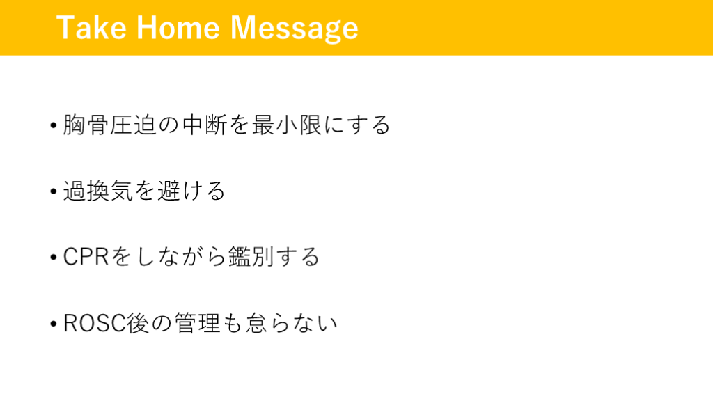 ROSC後の管理も怠らない Take Home Message