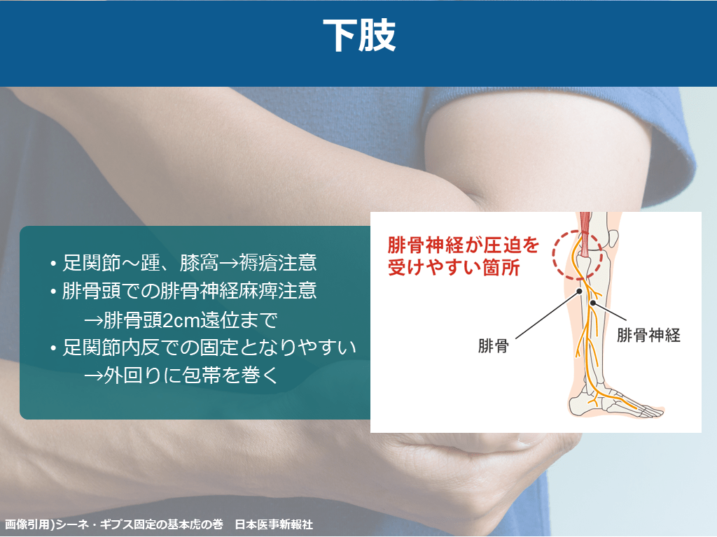 ▶足関節最大屈位での固定など スライド画像)広島大学病院 演者作成 良肢位