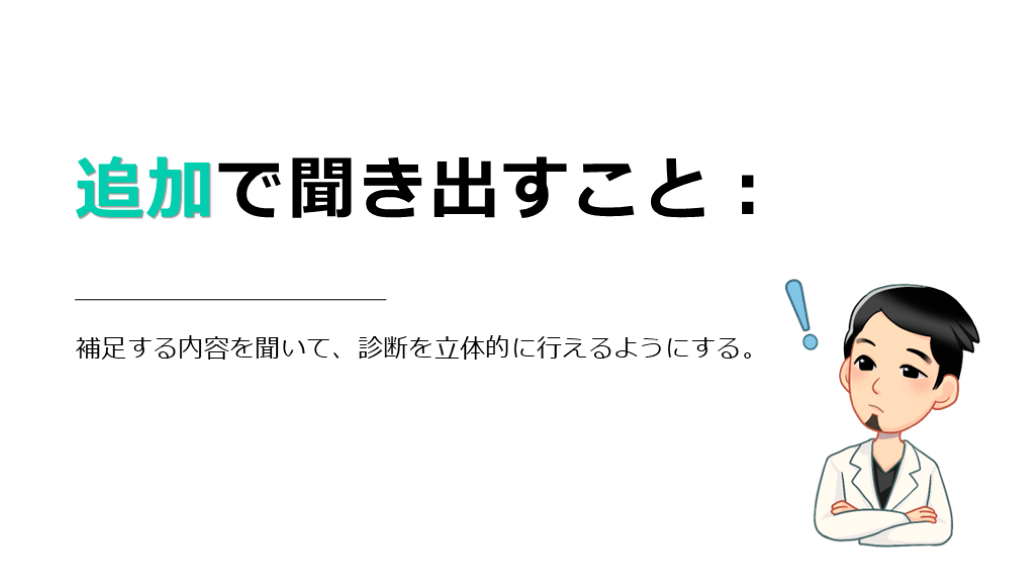 #12. 追加で聞き出すこと: 補足する内容を聞いて、診断を立体的に行えるようにする。