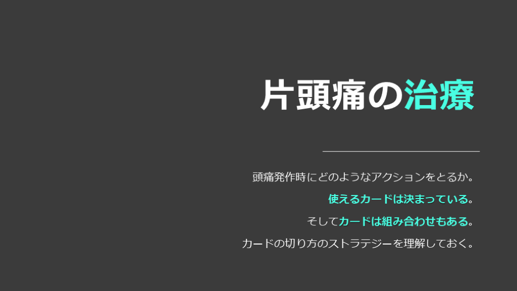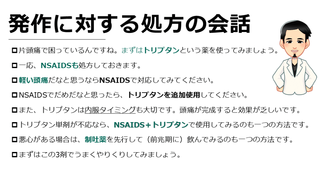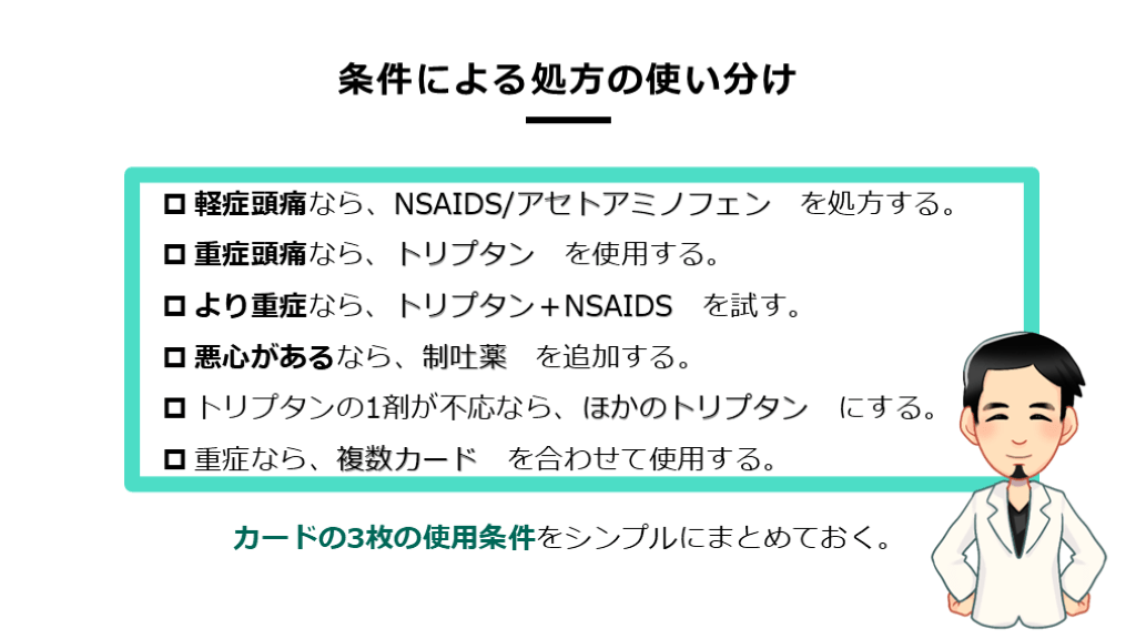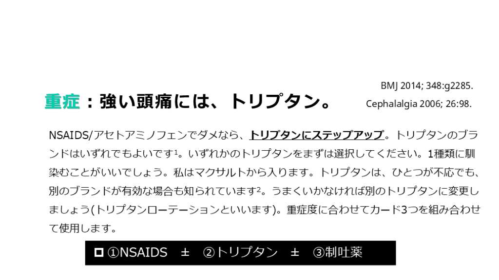 強い頭痛なので、トリプタンというカードを使っていきましょう。』