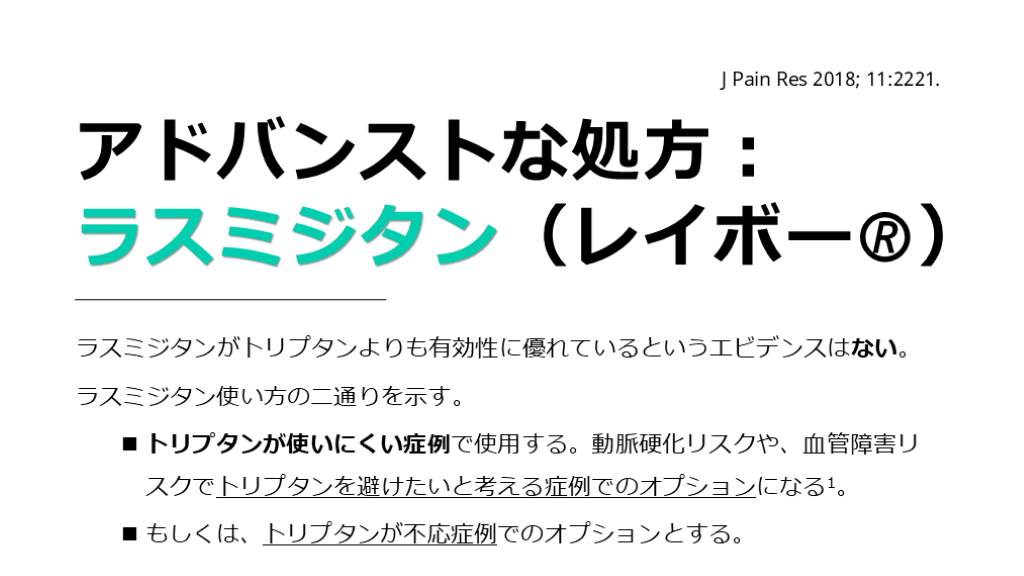 もしくは、トリプタンが不応症例でのオプションとする。 J Pain Res 2018; 11:2221.