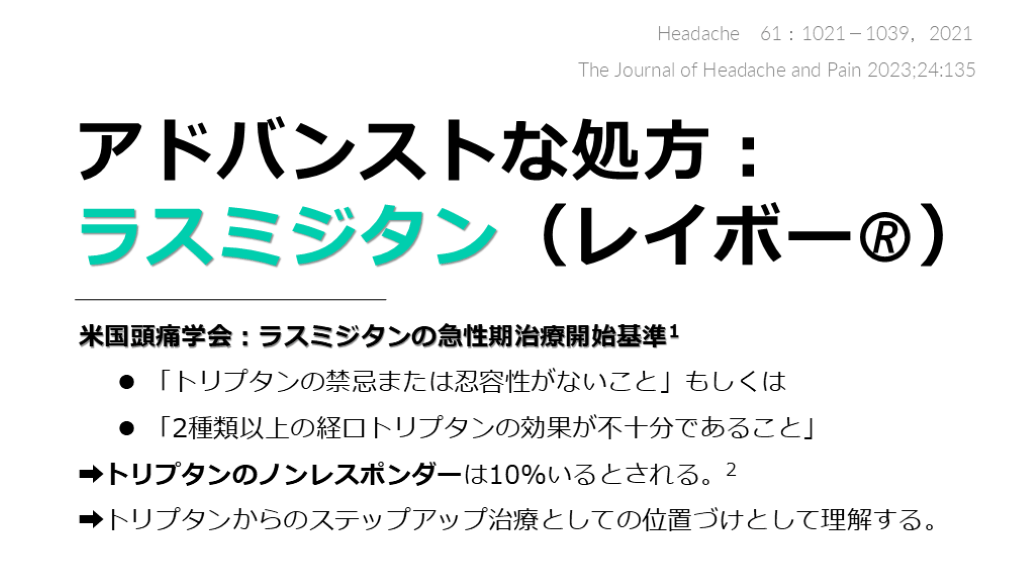 ラスミジタン(レイボー🄬) 米国頭痛学会:ラスミジタンの急性期治療開始基準1