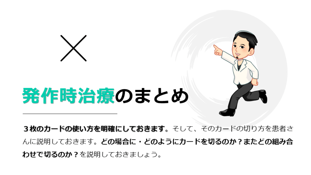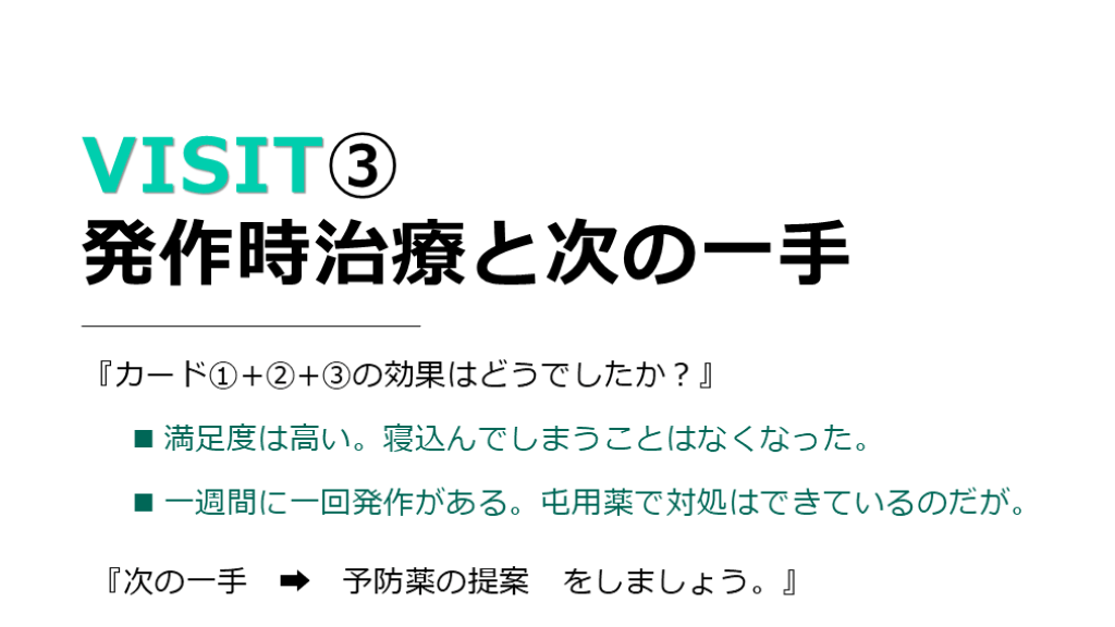 発作時治療と次の一手 『カード①+②+③の効果はどうでしたか?』