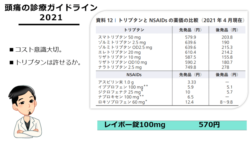 米国頭痛学会は第一選択にしてもいい、という立場をとっている。