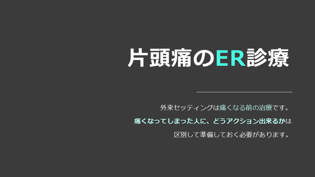 #43. 片頭痛のER診療 外来セッティングは痛くなる前の治療です。