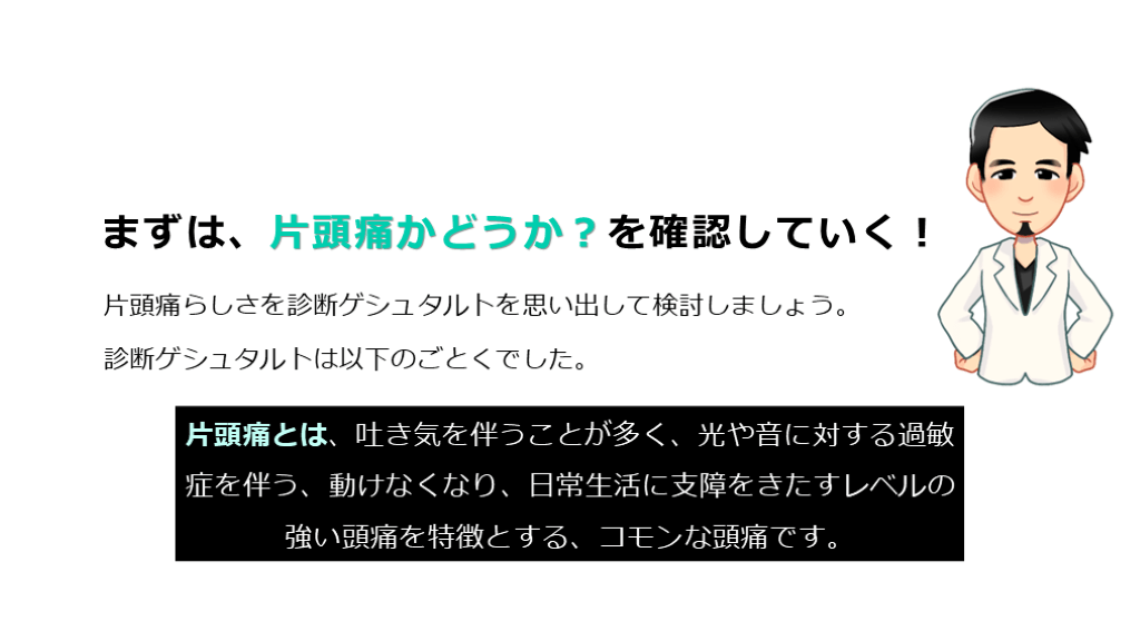 #49. まずは、片頭痛かどうか?を確認していく! 片頭痛らしさを診断ゲシュタルトを思い出して検討しましょう。