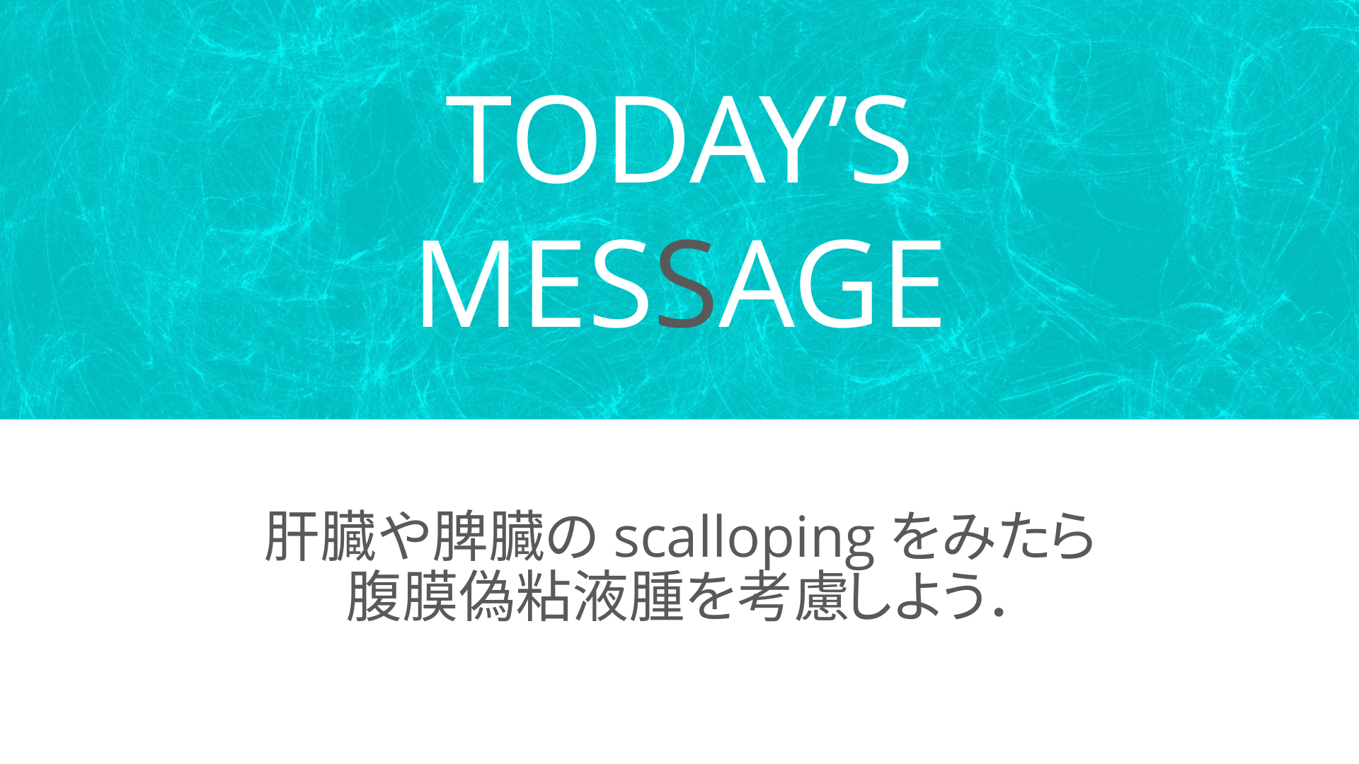 #33. TODAY’S MESSAGE 肝臓や脾臓の scalloping をみたら 腹膜偽粘液腫を考慮しよう.